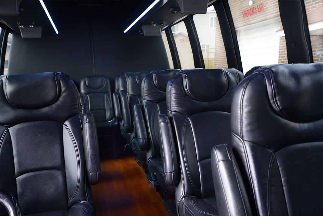 Depending on interior configuration, our custom-designed minibuses are perfect for medium-size groups offering seating for 24 passengers and a comfortable ride with even more legroom and headroom than our other vehicles. Amenities include a premium stereo sound system with CD player, TV with DVD player (available in some vehicles), high-back chairs with armrests and delightfully tall and wide windows for outside viewing. Additionally, our minibuses offer extensive separate luggage capacity.